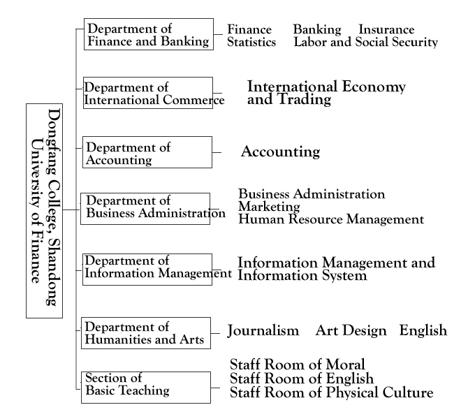 Dongfang College, Shandong University of Finance and Economics is located in the world famous resort---Tai’an City, Shandong Province. Tai’an has Jinan, the Spring City on the north and Qufu, the Holy City on the south; the Mountain (Tai), Water (the Spring City) and Saint (Confucius) gather here, thus endowing it a profound culture. With the buildings visually intermingled and running water under the bridge clean and gurgling, the campus has a beautiful environment and unique architectural style and layout with untouchable cultural taste, which fully embodying the harmony of human and environment and the blending of tradition and modernity.