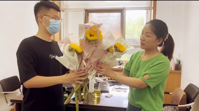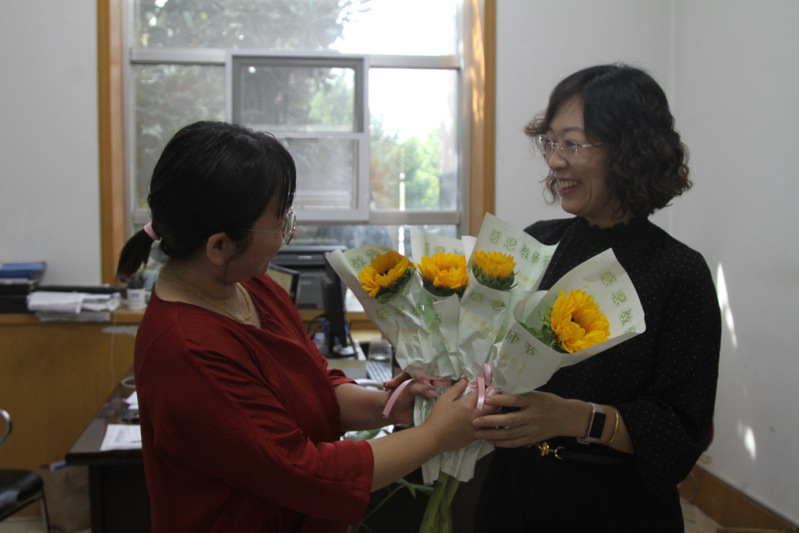 在硕果飘香、天清气朗的九月,我们迎来了第 38 个教师节。今年的教师节,恰与中秋节同一天,使这个教师节多了更多的甜蜜。为表达对辛勤育人的教师们的敬意及感谢,beat365在线登录工会组织了独具仪式感的慰问活动——给辛勤工作的老师们献上一株向日葵。