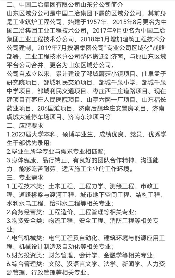 [企业、国内]中国二冶集团有限公司2023届秋季校园招聘(山东区域分公司)