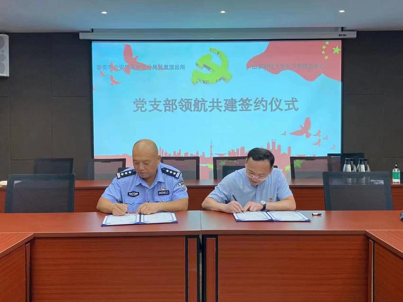 我校常务副院长宋保峰、凤凰派出所所长张雪松、副所长韩传胜参加了本次签约仪式,总务处党支部书记胡阔慧主持。双方介绍了各自党建工作取得的成绩和经验,并进行了友好的探讨与交流。通过此次共建活动,双方党支部对党建工作的好方法好经验进行了相互借鉴,增强了党建工作的针对性和实效性,充分发挥了基层党组织的战斗堡垒作用和共产党员的先锋模范作用。